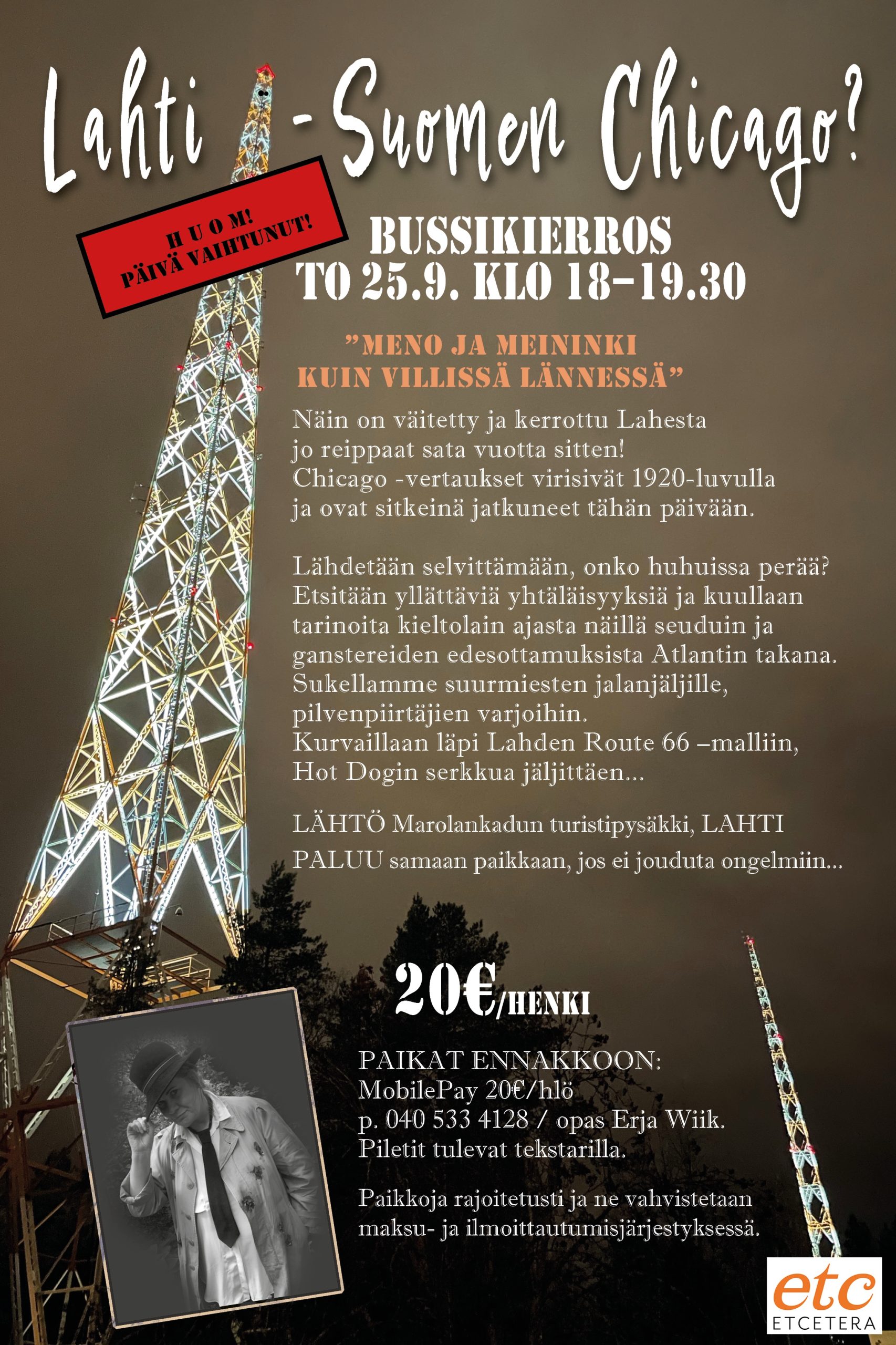to 25.9. klo 18-19:30. Lähtö ja paluu Marolankadun turistipysäkki, Lahti